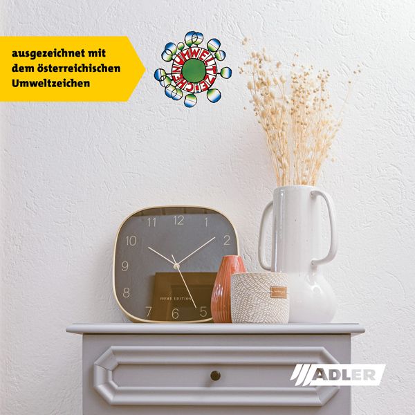 Adler Mineralfarbe ist bestens geeignet zur Beschichtung auf trockenen, festen und tragfähigen Untergründen im Innenbereich wie mineralische Untergründe, Gipskartonplatten und tragfähige Silikatbeschichtungen.