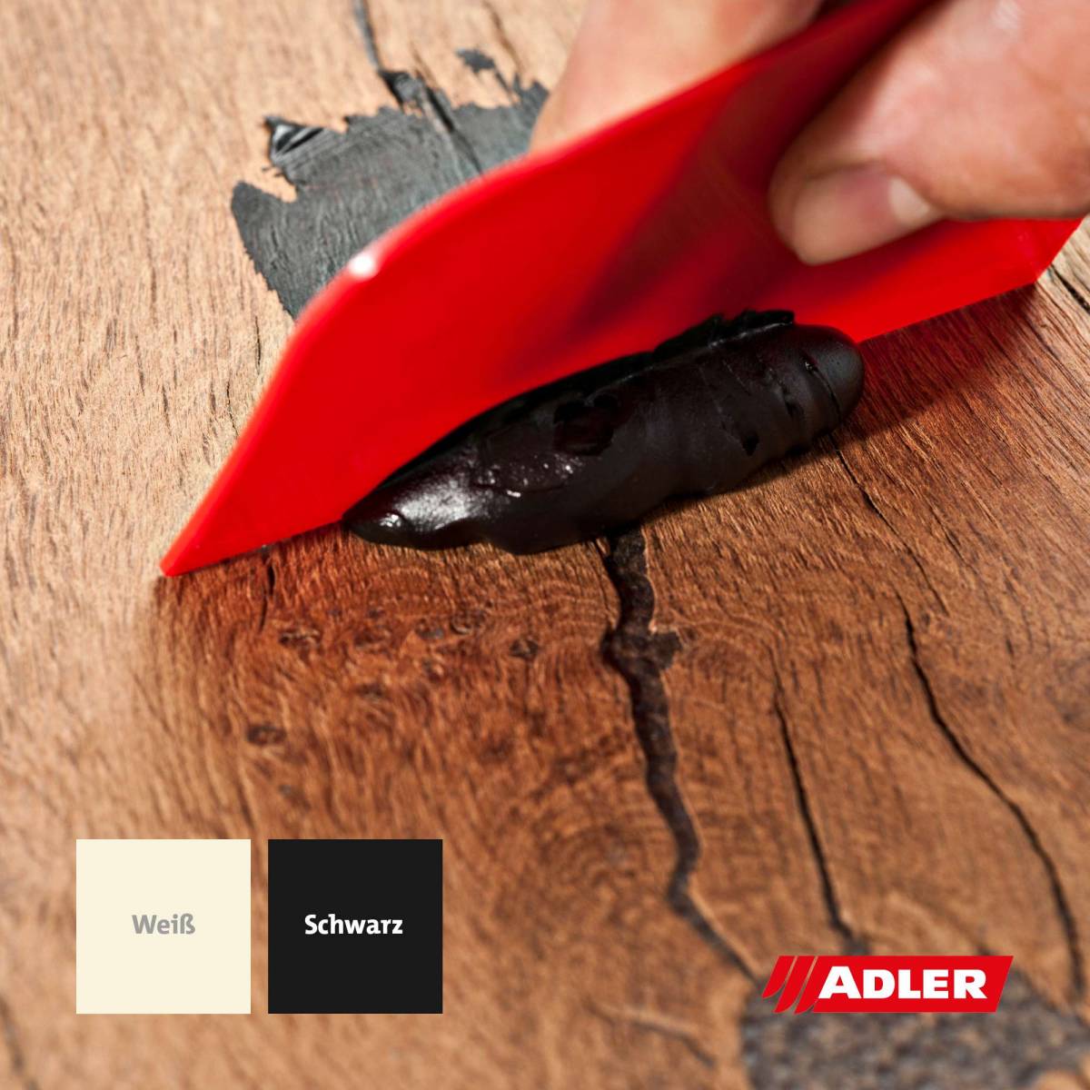 Adler Polyfeinspachtel ist bestens geeignet zum Ausbessern von kleinen Fehlstellen von Holz im Möbel- und Innenausbau, sowie Metalloberflächen.
