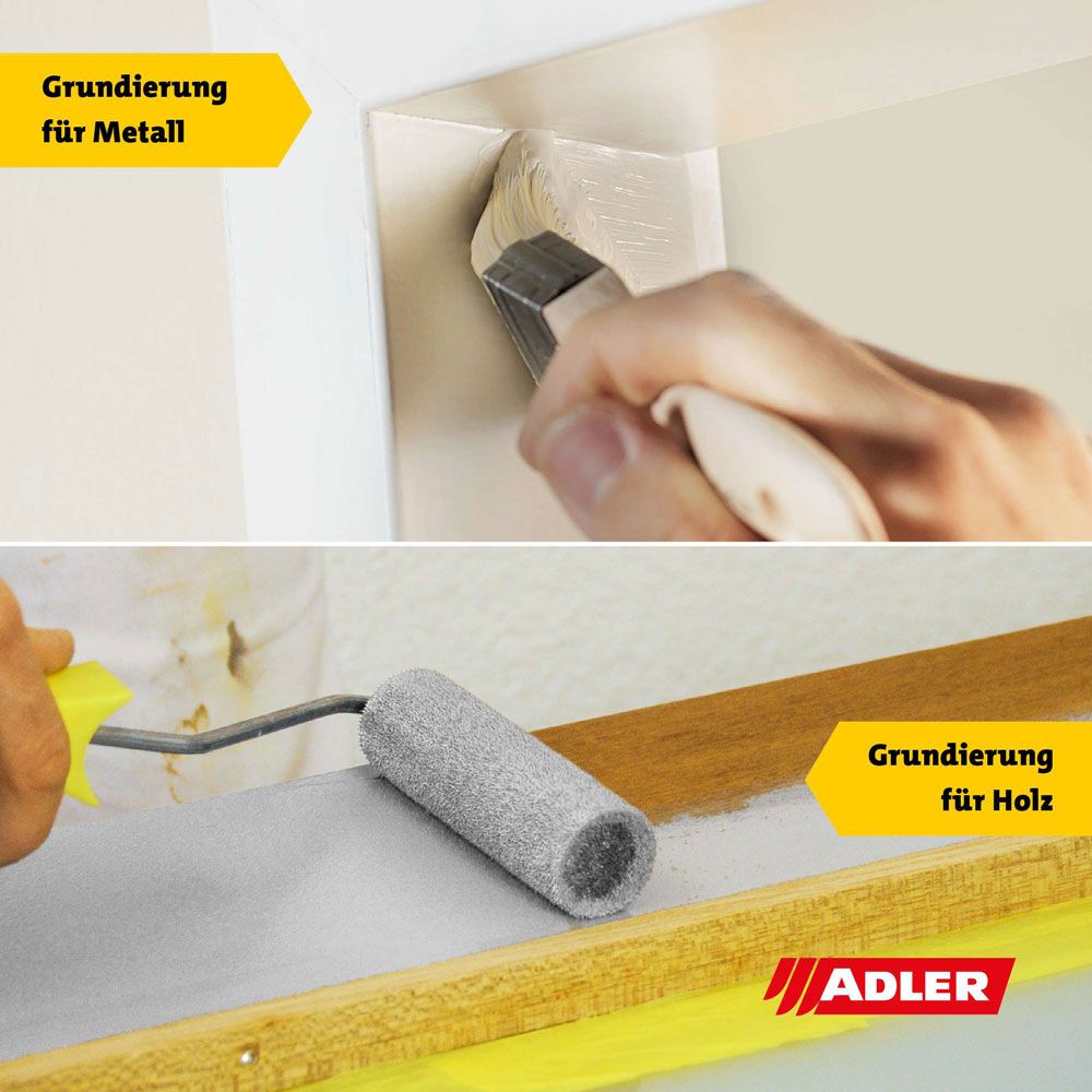 Adler Unigrund LM ist eine lösemittelhaltige, Universelle 1K Haftgrundierung auf Basis spezieller Kunstharze mit Korrosionsschutzwirkung für den Innen- und Außenbereich. Die Grundierung bietet einen ausgezeichneten Rostschutz, eine gute Wetterbeständigkeit und ist universell auf unterschiedlichen Untergründen anzuwenden.