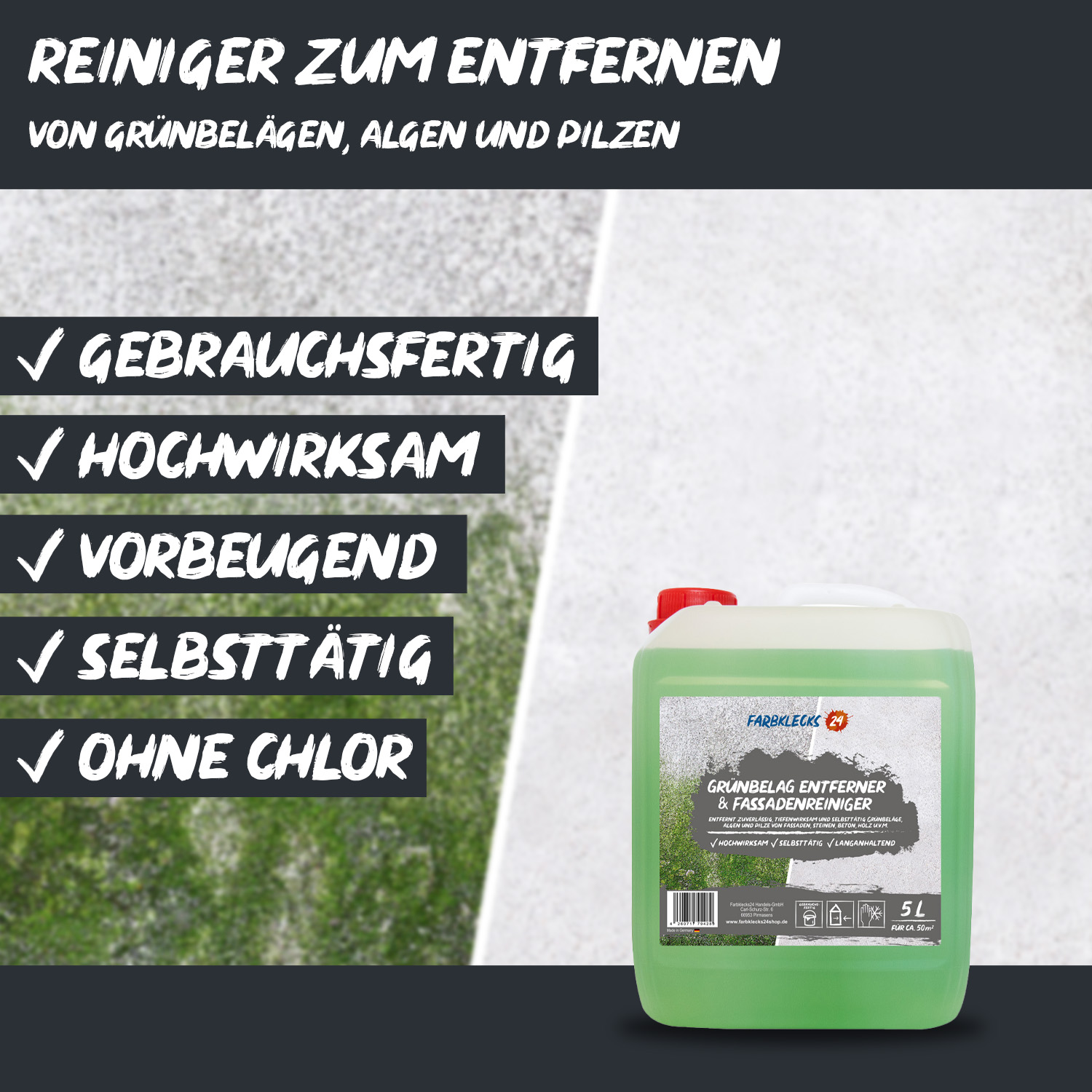 Farbklecks24 Grünbelagentferner & Fassadenreiniger 5L, Steinreiniger, Betonreiniger